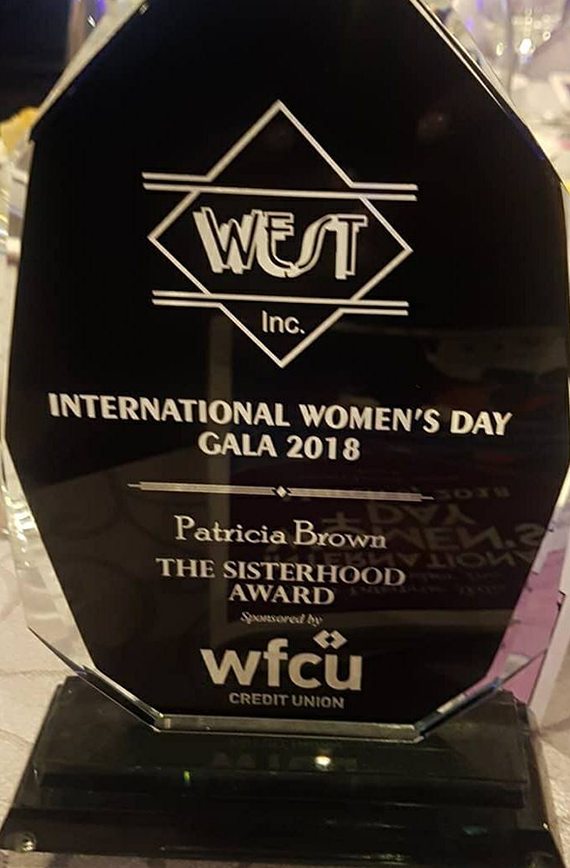 Patricia Brown, an esteemed lawyer in Windsor, was honored with the Sisterhood Award from Women’s Enterprise Skills Training of Windsor Inc. (WEST) on May 1, 2018.